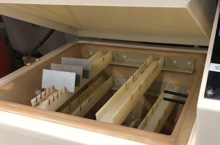 De zoutsproeitest is een belangrijke maatstaf voor hoe goed een coating bestand is tegen corrosie, vooral in zware buitenomstandigheden. In deze test wordt een gecoat proefpaneel gedurende langere tijd blootgesteld aan een fijne nevel van zout water, meestal in een afgesloten testkamer. Dit simuleert een agressief klimaat, zoals kustgebieden of industriële omgevingen waar zout, vocht en vervuiling continu invloed hebben op het oppervlak.