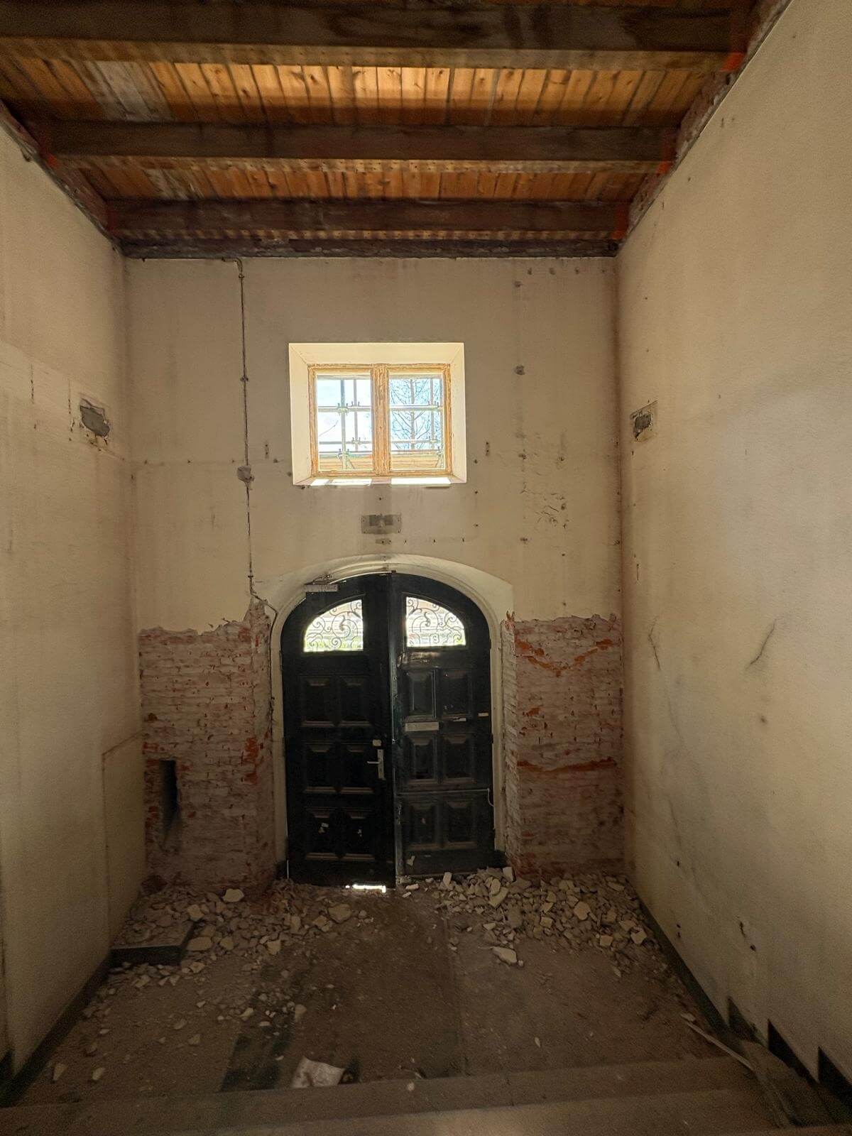 De wanden waren eerder afgewerkt met een raapmortel die op meerdere plekken niet goed meer hechtte. Het stucwerk liet lokaal los van de ondergrond, wat direct invloed heeft op de stabiliteit van het geheel. Dit betekent dat je niet zomaar kunt overschilderen of afwerken, maar eerst moet zorgen dat de basis weer betrouwbaar wordt. Het herkennen van deze instabiliteit is bepalend voor het verdere systeem dat je toepast.